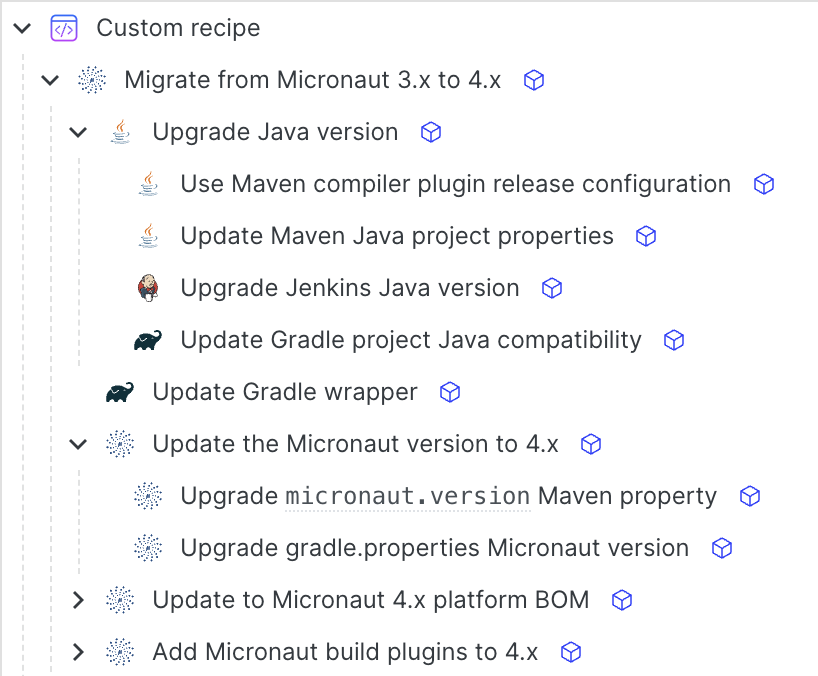 In addition to using Moderne for running recipes, it is also common to use the built-in debugging tools for recipe development.